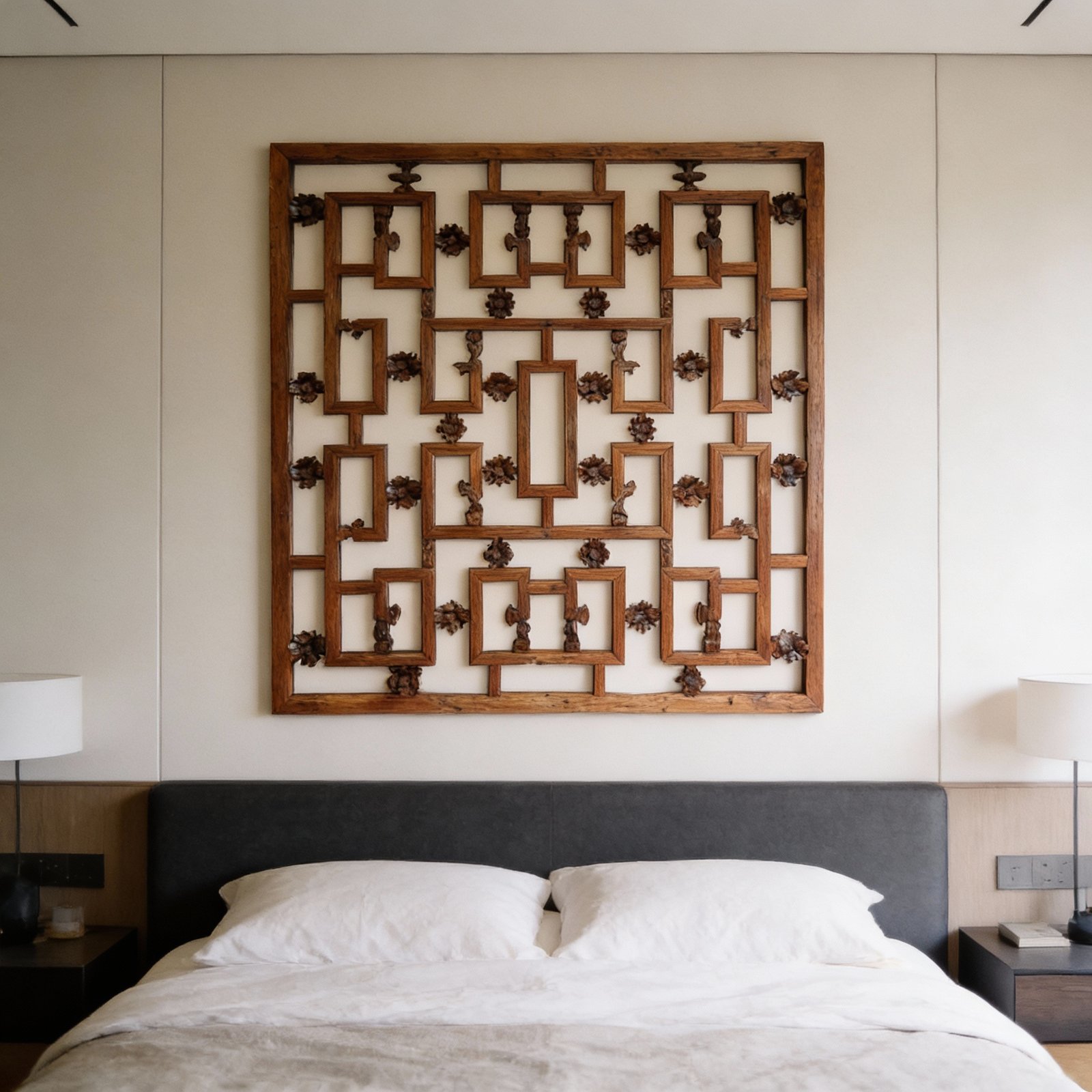 Tiene una estructura interior geométrica y natural de flores talladas a mano.
